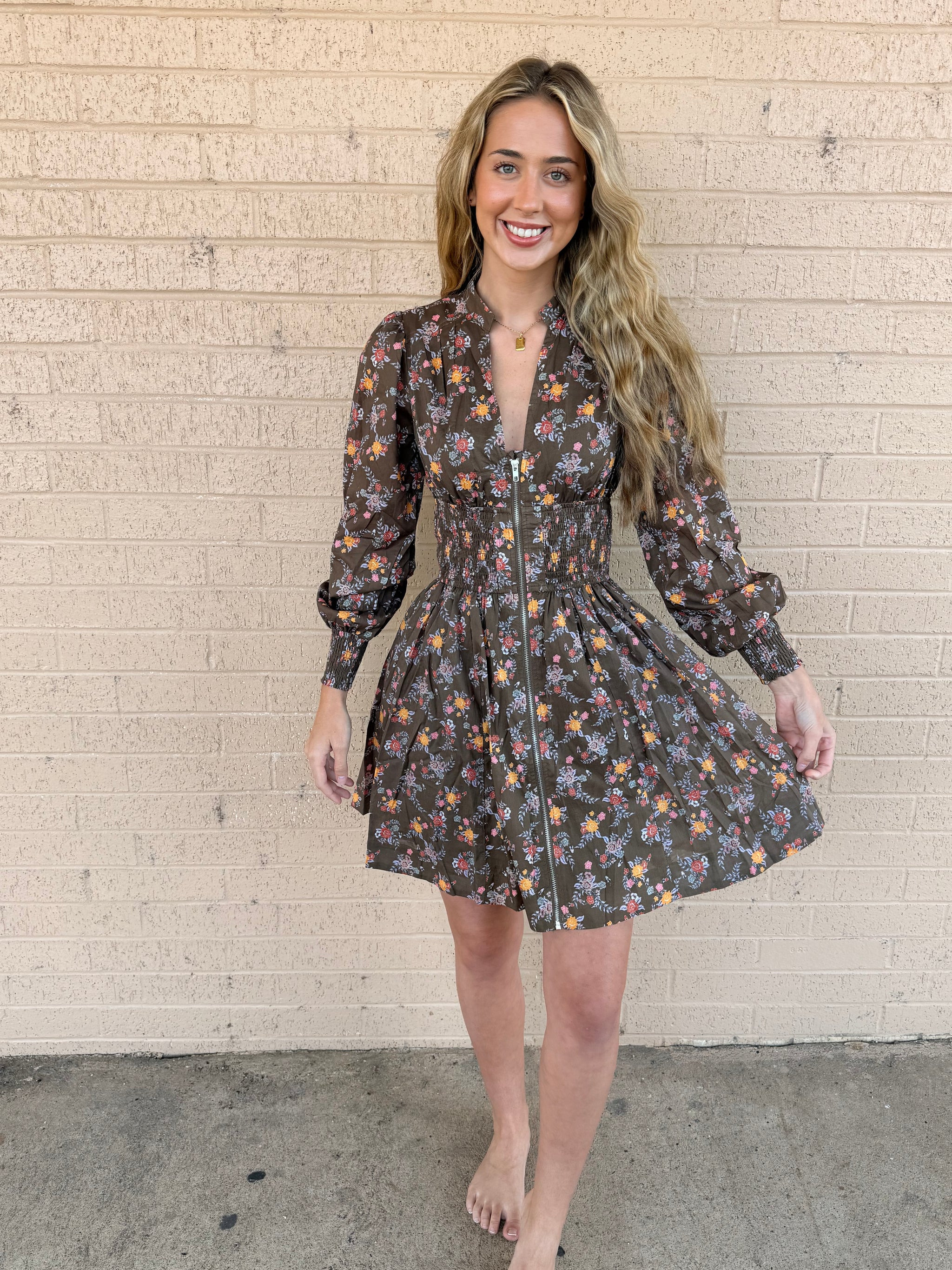 Brown Floral Fall mini dress