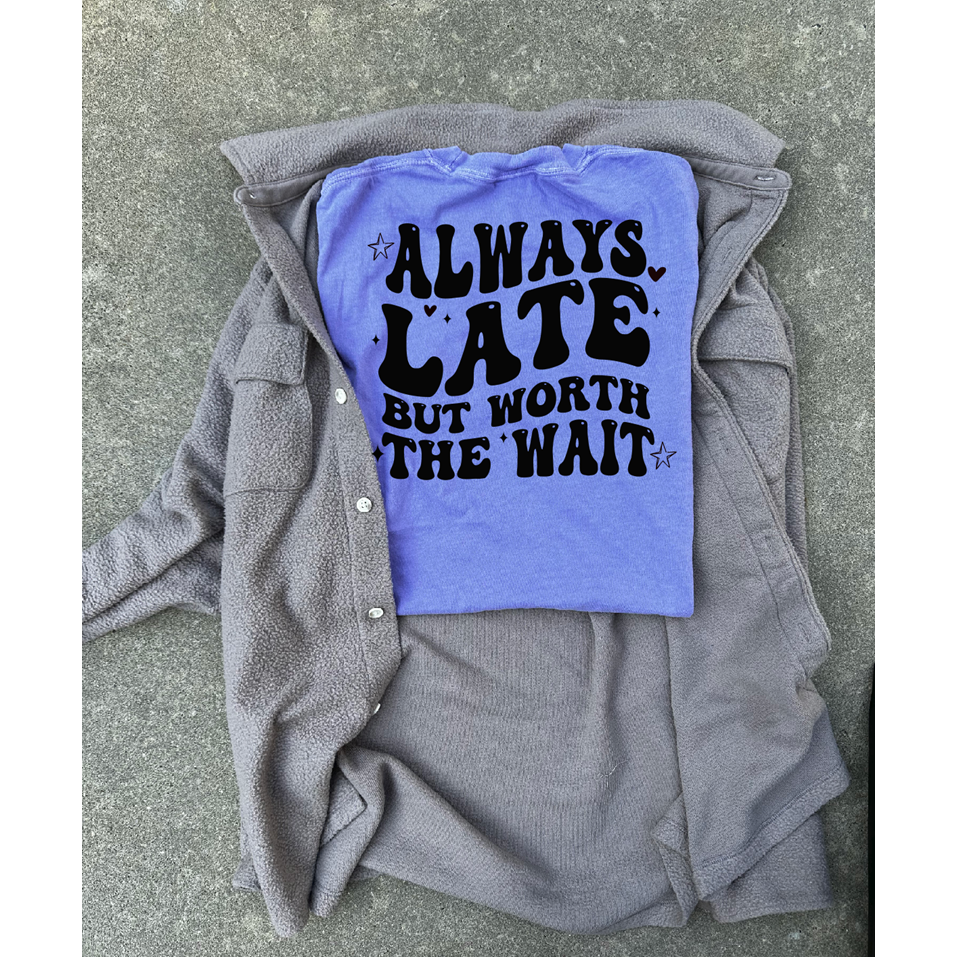 Always late worth the wait tee or sweatshirt